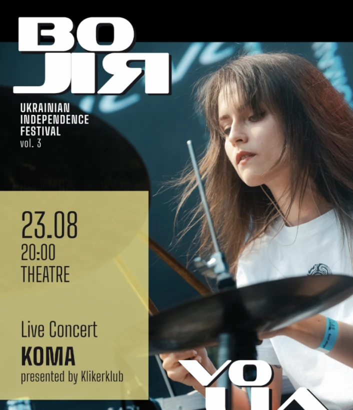 🌓 KOMA — сольний проєкт української барабанщиці та музичної продюсерки Альони Коваленко. Її живий виступ поєднує електронні звукові ландшафти з живим барабанним виконанням, балансуючи між ембієнтом, експериментальною та ритмічною музикою. У супроводі занурювальних візуалів вистава створює атмосферу, що водночас гіпнотизує та емоційно захоплює.
