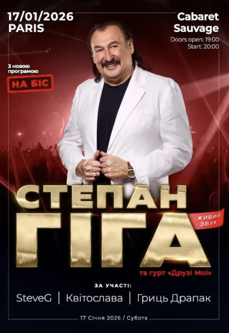17 січня 2026 року у Cabaret Sauvage відбудеться концерт Степана Гіги у Парижі.
