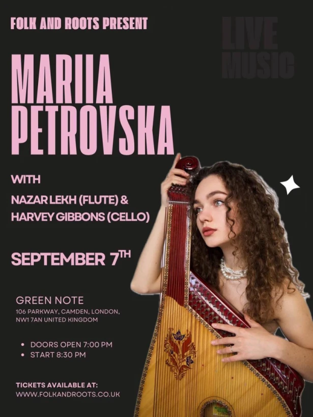 Запрошуємо на атмосферний вечір із зворушливою музикою у виконанні української бандуристки Марії Петровської, Назара Леха (флейта) та Гарві Гіббонса (віолончель).