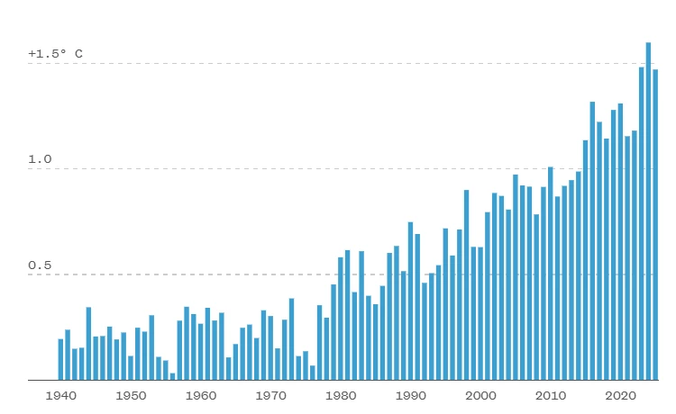 2025 рік увійшов до трійки найтепліших років в історії вимірювань, свідчать останні дані кількох міжнародних кліматичних агентств. Це черговий тривожний сигнал про те, що глобальне потепління продовжує прискорюватися на тлі зростання концентрації парникових газів в атмосфері.