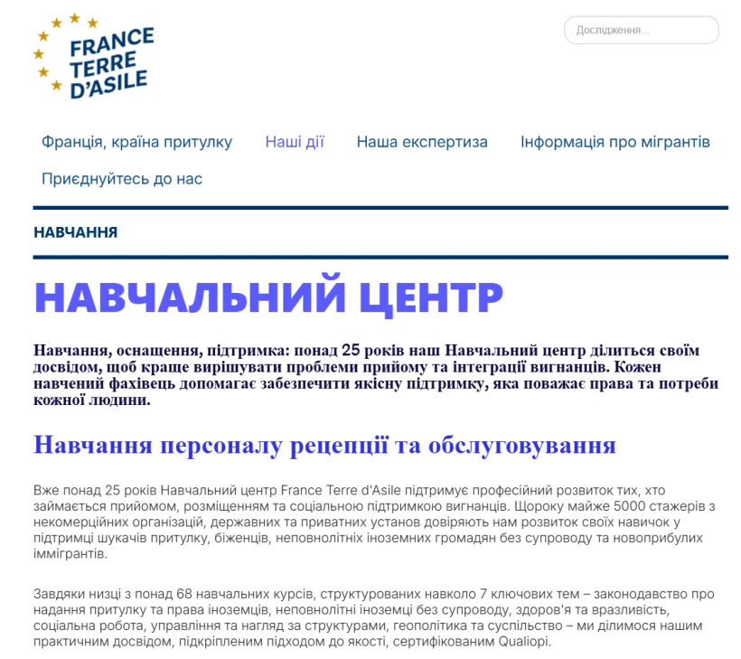 - Тимчасове житло та адміністративну допомогу для тих, хто щойно прибув до Франції.