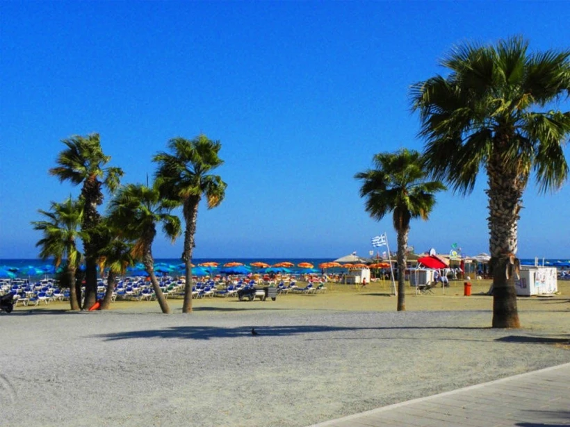 Один із найбільш міських пляжів Кіпру, з довгою набережною і нескінченною лінією пальм. Його особливість — близькість до аеропорту: літаки злітають і сідають просто над морем, тож діти часто в захваті. Мілководдя та рівний берег роблять купання комфортним навіть для найменших.
