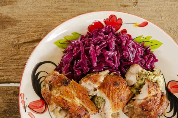 Класичне поєднання на німецькому святковому столі - запечений гусак із червоною капустою (Rotkohl).