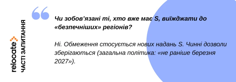Отже, нові заявники з цих областей з 1.11.2025 зазвичай не отримуватимуть S, але можуть подати заяву про притулок (Asyl) у звичайному порядку.