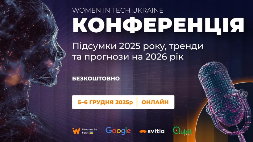 З метою підтримки інклюзивності, рівних можливостей та жіночого лідерства у діджитал-сфері, 5–6 грудня 2025 року відбудеться онлайн Women in Tech Conference 2025: “Підсумки 2025 року, тренди та прогнози на 2026 рік”. Це найбільша щорічна безкоштовна онлайн-подія для ІТ-професіоналів, бізнесу та стартапів, що об’єднує українських і міжнародних лідерок для обміну досвідом, аналізу головних трансформацій 2025 та обговорення тенденцій та можливостей для жінок у 2026 році.