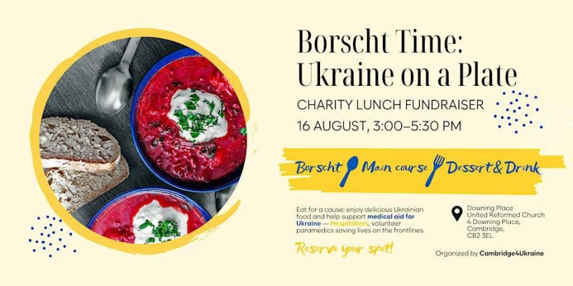 Borscht Time: Насолодіться українською вечерею в Кембриджі 16 серпня та підтримайте Україну!