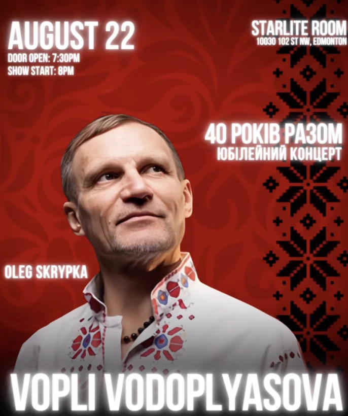 Легендарні Воплі Відоплясова повертаються до Едмонтона з грандіозним туром на честь 40-річчя гурту, приуроченим до Дня Незалежності України.