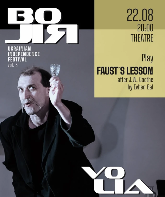 🎟️ Вистава «Урок Фауста» є частиною програми фестивалю ВОЛЯ. Її можна відвідати за дводенним фестивальним абонементом або придбати окремий квиток на цю подію.