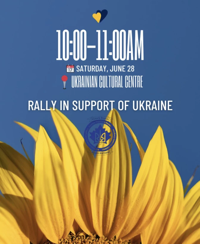 28 червня з 10:00 до 11:00 біля Українського культурного центру (3277 Douglas St) ми проводимо ралі на підтримку України до Дня Конституції 🇺🇦